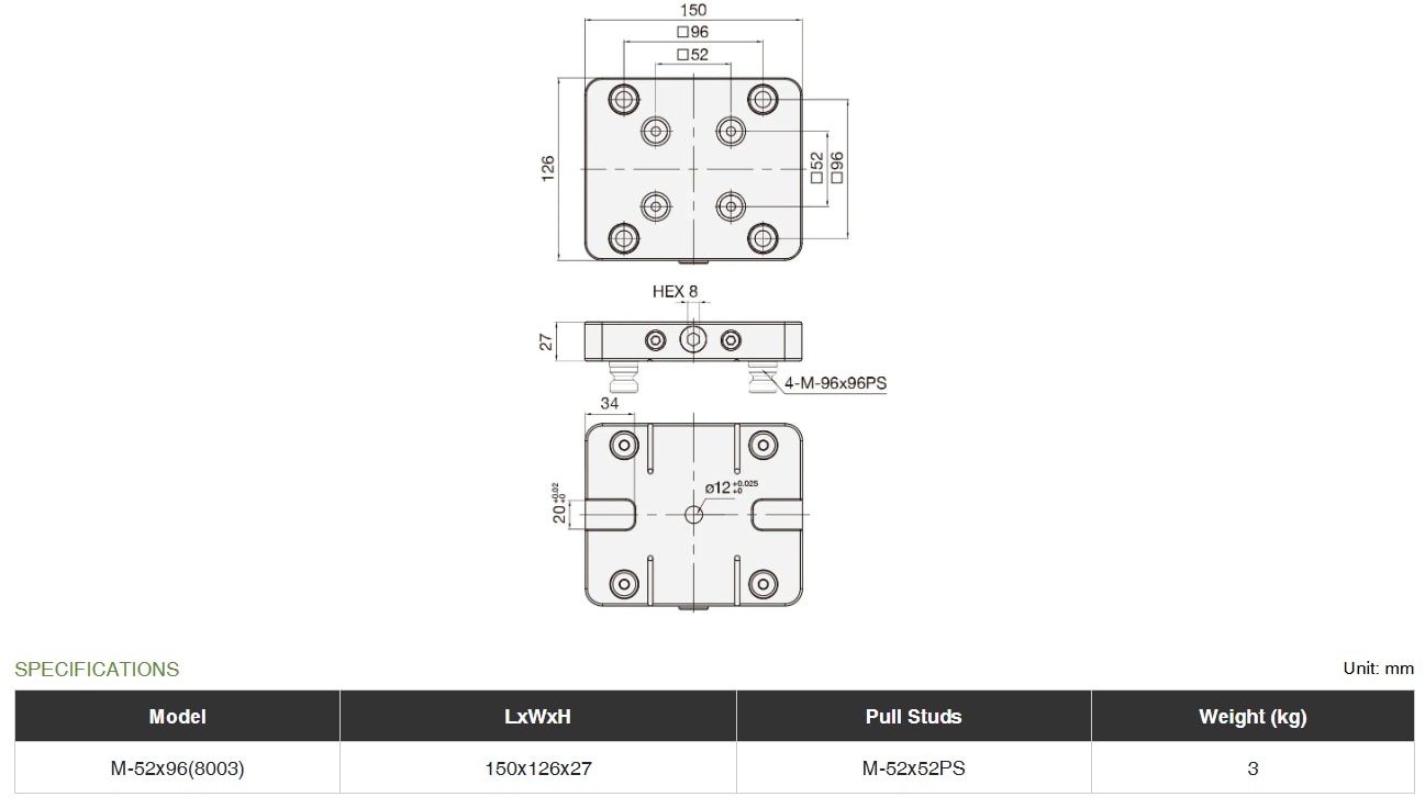1. La partie supérieure se connecte au système de boulon de traction de 52 mm et la partie inférieure au système de 96 mm : changez instantanément de configuration de serrage sans modifier votre machine. Gagnez du temps, réduisez vos coûts et optimisez votre flexibilité.