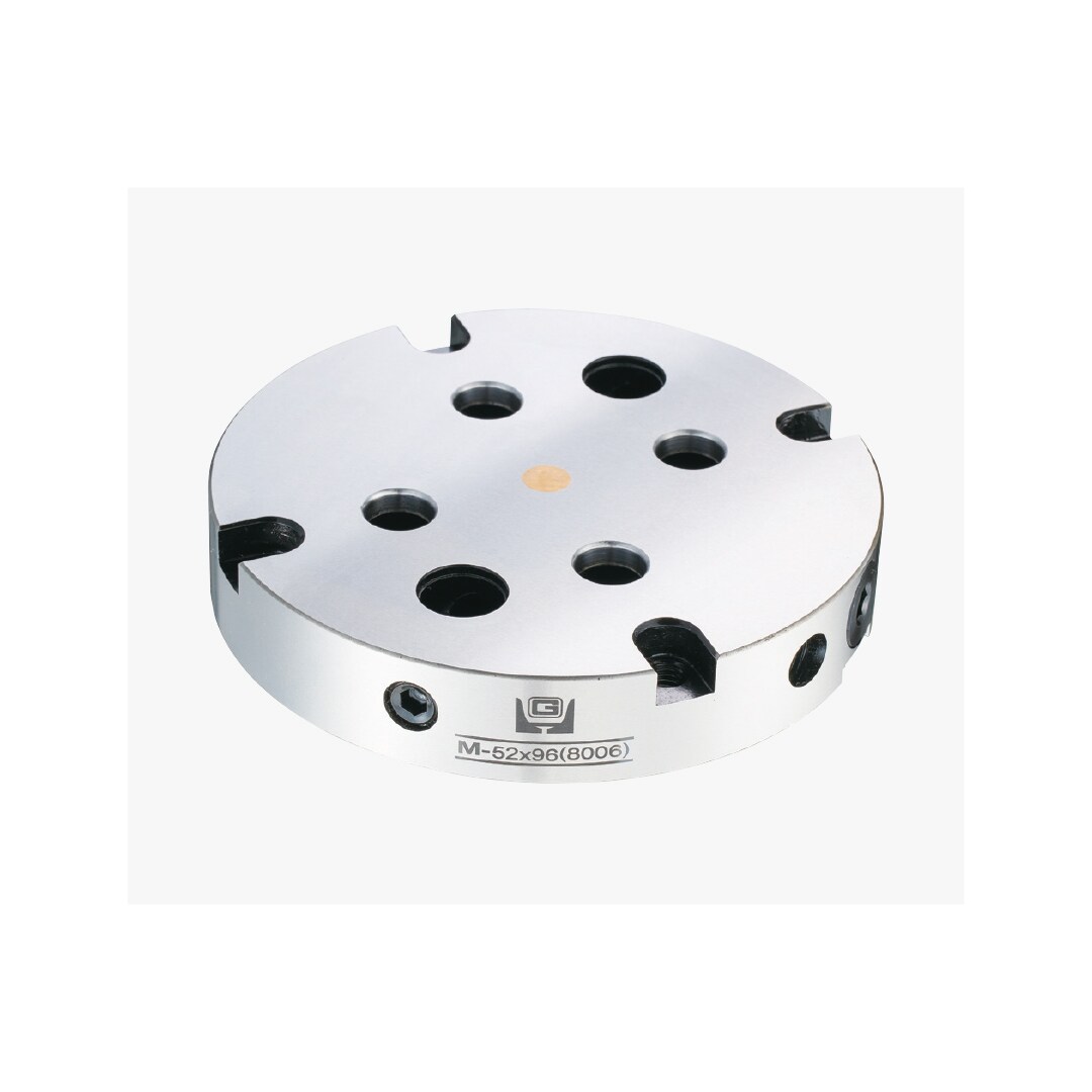 La PLAQUE D'ADAPTATION RONDE À POINT ZÉRO est conçue pour améliorer la flexibilité d'usinage. Elle permet une conversion fluide entre des entraxes de boulon de 96 mm et 52 mm, garantissant ainsi la compatibilité avec divers montages de fixation tout en conservant une précision de centrage supérieure.